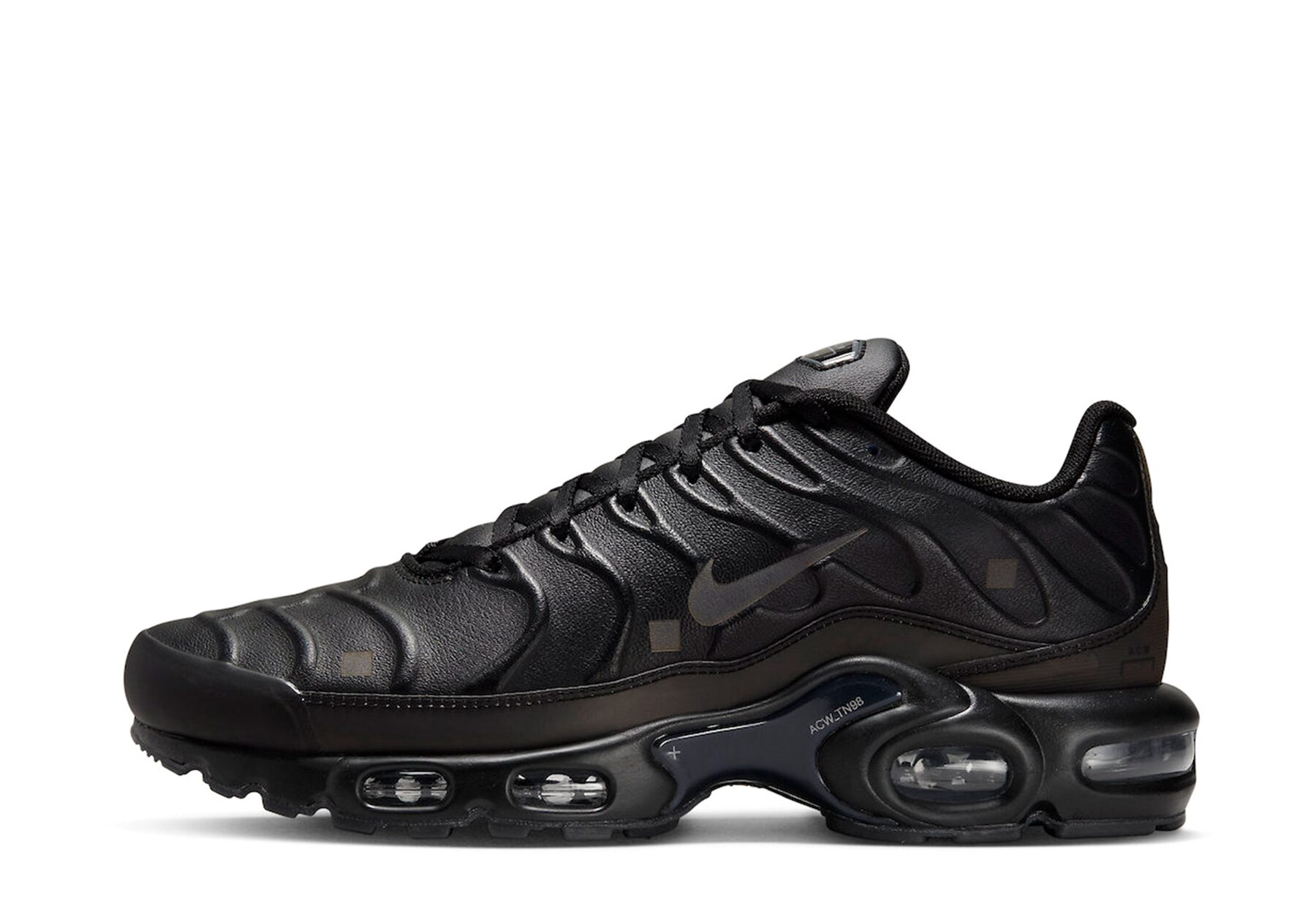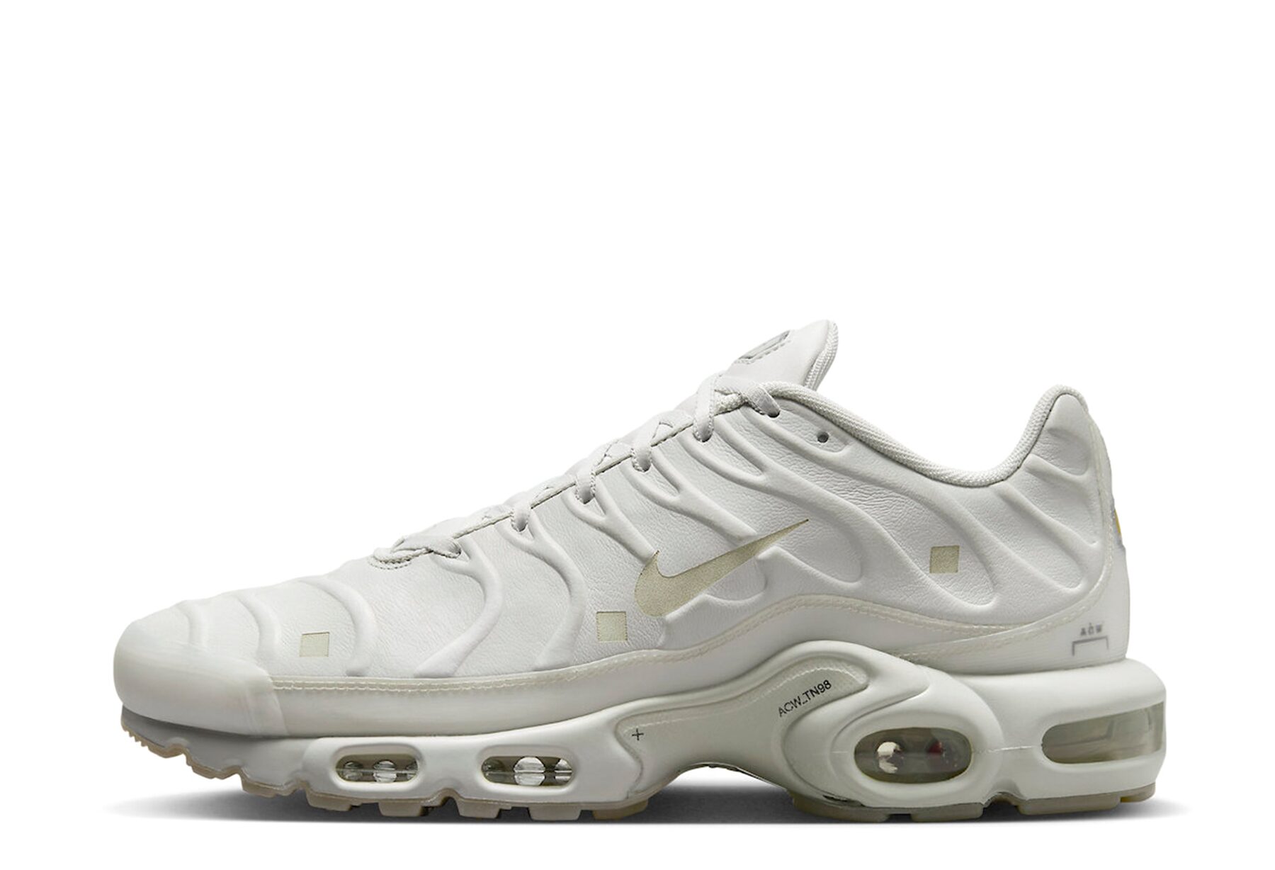 Samuel Ross, founder of A-COLD-WALL*, brought a typically restrained and technical perspective to the TN. The collaboration arrived in three colourways – ‘Black’, ‘Platinum Tint’, and ‘Blue’ – featuring remodelled TPU overlays, leather bases instead of the original mesh, and semi-transparent sections throughout. Ross modified the Nike Air Max logos across the shoe and extended his signature aesthetic to the packaging.