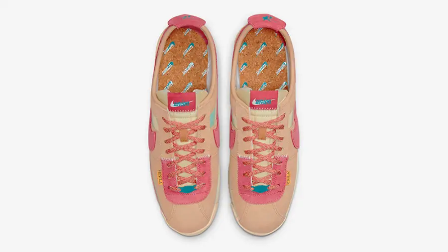 Kicking off this week, Union LA is dropping their colourful take on the Nike Cortez. The Canvas portions of the upper feature stripes of pink and blue, with the suede panels coming in khaki and bright pink. The shoe also features a Crater Foam sole, with iconic Union branding on the ‘UN/LA’ and ‘Frontman’ tags.